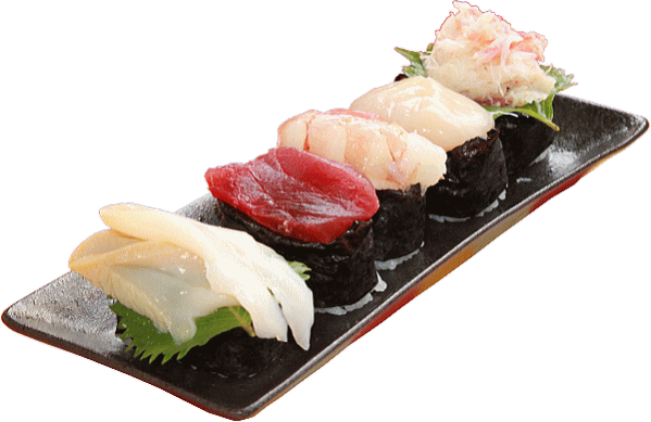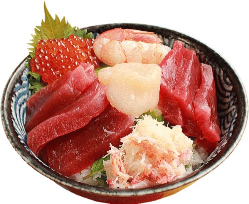 | (マグロ、海老、ホタテ、カニ、イクラ) |